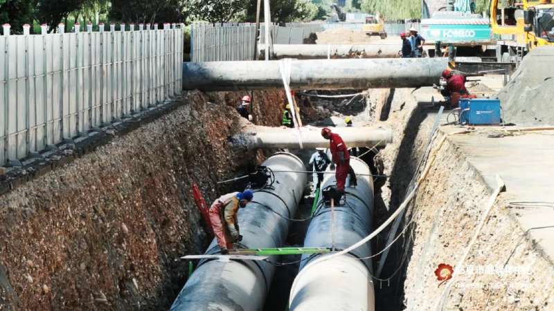 近日,記者來到該工程現(xiàn)場時,起重機(jī)正將一根根供熱管道吊起,精準(zhǔn)地放進(jìn)溝槽內(nèi);一旁的工作人員有條不紊地將一節(jié)節(jié)供熱管道鋪設(shè)、焊接,現(xiàn)場焊花閃爍、機(jī)聲隆隆,挖掘機(jī)和土方車來來回回,進(jìn)行溝槽開挖、渣土運(yùn)送。